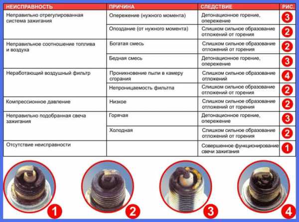 После этого нужно проверить свечи зажигания. Для этого берем соответствующий ключ и просто выкручиваем их. Если они залиты топливом, то это свидетельствует об избытке топлива в цилиндрах. Это может произойти в результате нарушения герметичности форсунок или нарушении зажигания. Если свеча будет абсолютно сухая, то это говорит о том, что горючее в цилиндры вообще не подается. Необходимо проверить работоспособность (наличие искры) всех свечей.