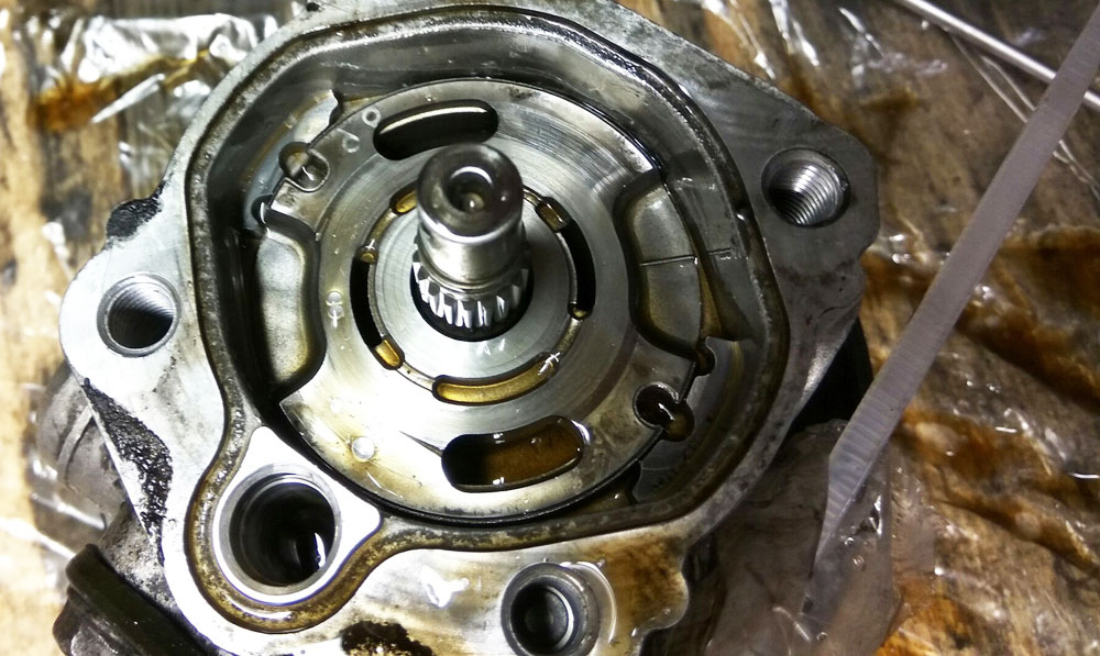 Кроме того, загрязненное масло может вызвать задиры на нажимных дисках внутри насоса рулевого управления, что может привести к отсутствию давления, что, в свою очередь, может привести к тому, что рулевое управление станет тяжелым, а также может привести к шуму насоса. Кроме того, загрязненное масло может повредить сальники, что приведет к утечке жидкости рулевого управления из насоса.