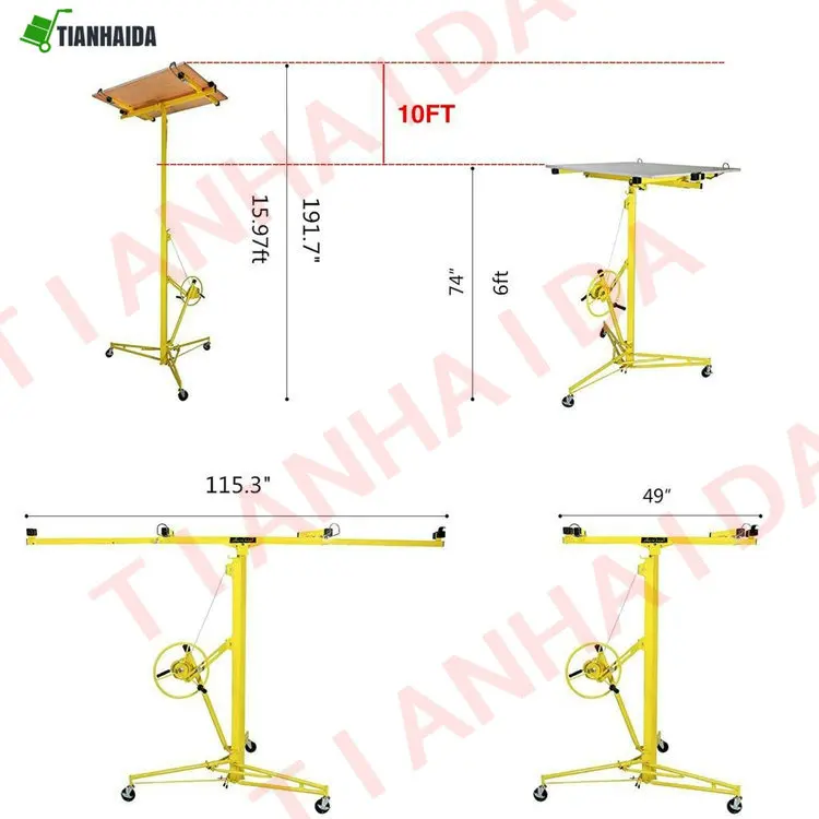 - на подъемник для монтажа гипсокартона можно закрепить перфоратор для простоты его использования на высоте;