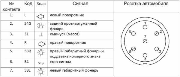 Универсальная схема подключения прицепа: распиновка розетки фаркопа под 7-пиновый стандарт