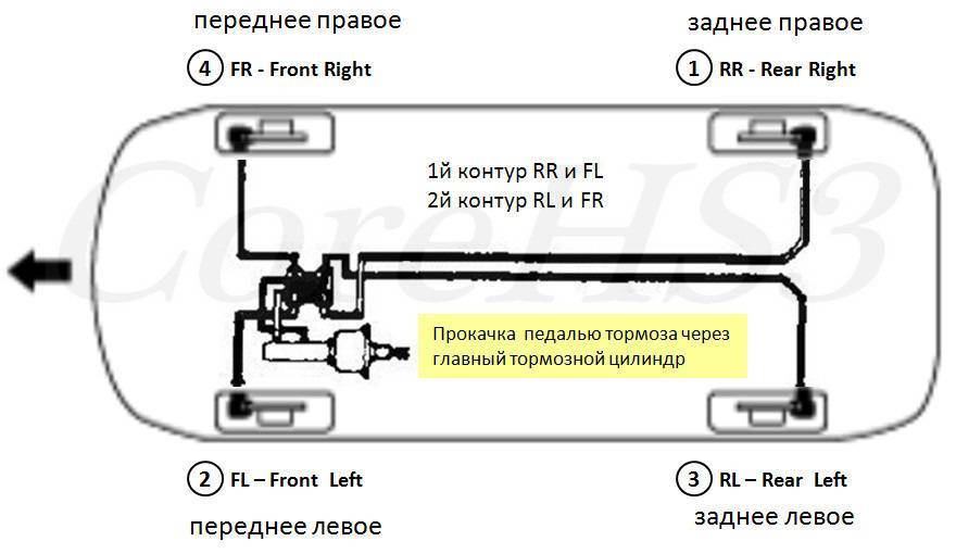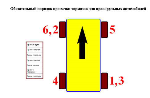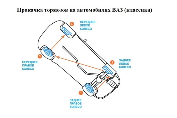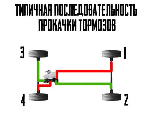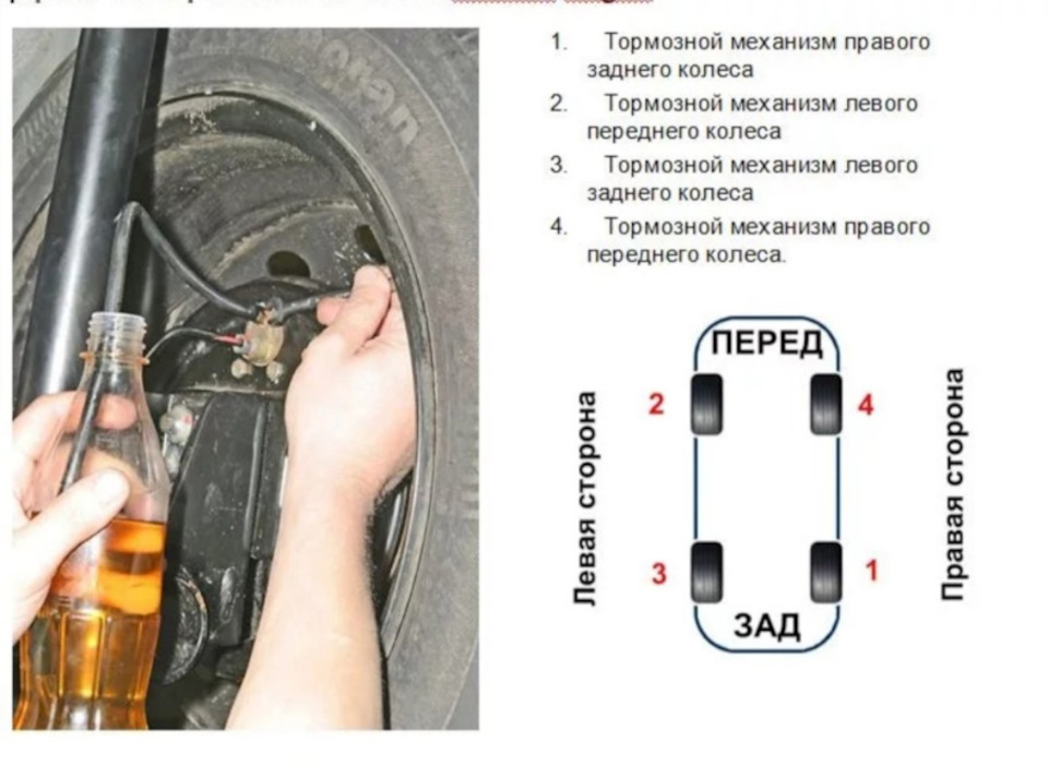 Схема прокачки тормозов предполагает начало процесса от колеса, расположенного дальше от ГТЦ.