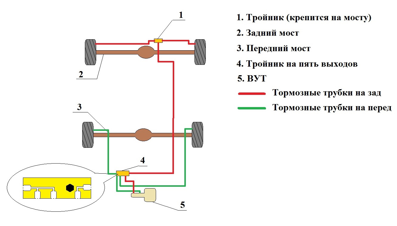 После чего штуцер плотно закручиваем и подобную процедуру продолжаем со следующим цилиндром расположенным ближе к ГТЦ. Как правило прокачка начинается с заднего правого колес (если руль расположен с лева по ходу движения автомобиля). Следующим прокачиваем заднее левое колесо. Затем регулятор тормозных сил. Он расположен над задним мостом. Переднее правое колесо затем переднее левое. Если на каждой стороне переднего моста расположены по два тормозных цилиндра. Сначала прокачиваем дальний цилиндр от ГТЦ как правило это нижний.