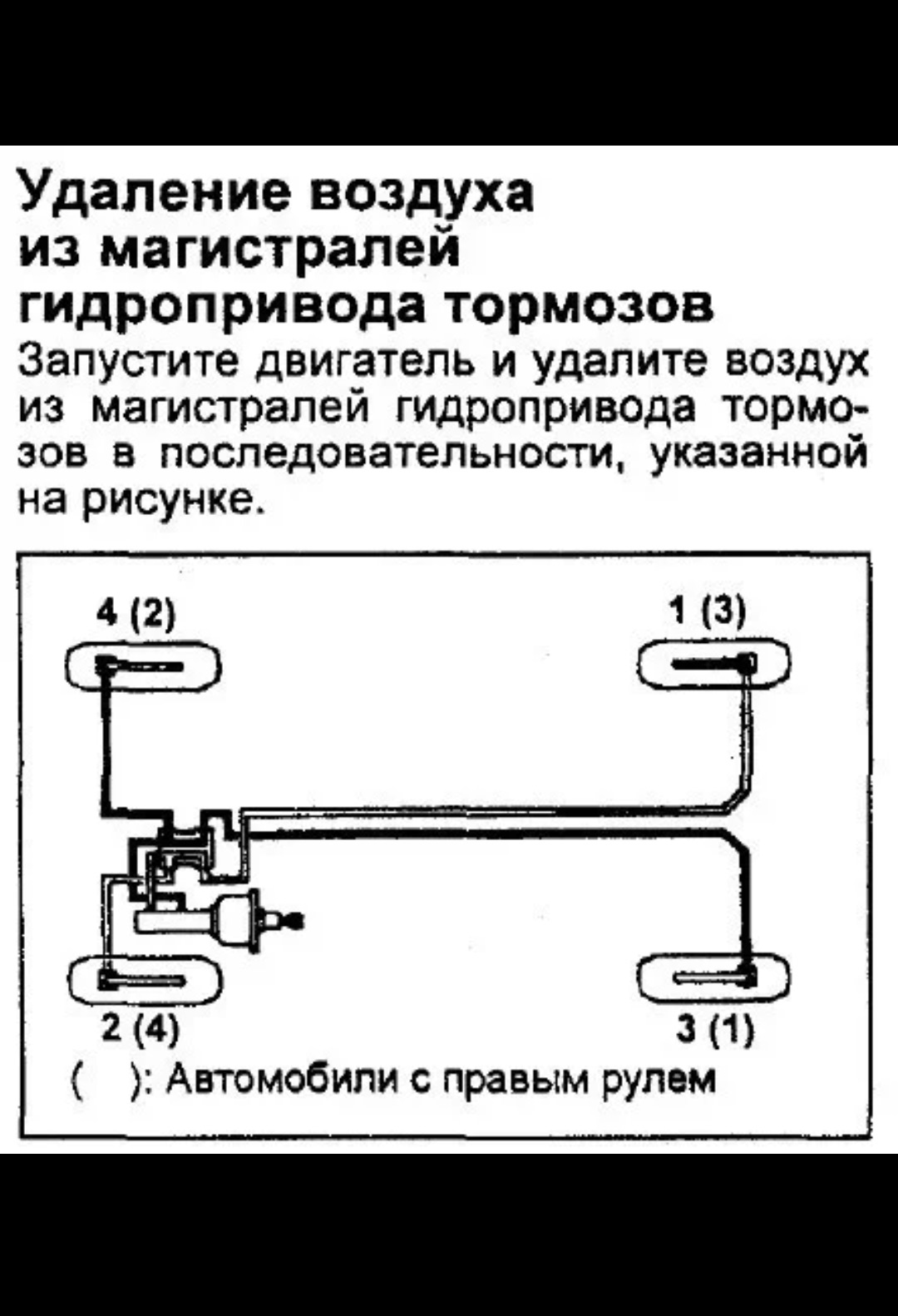 И воздух не был полностью удален. Либо нарушена периодичность прокачивали колес. Прокачивать цилиндры необходимо от самого дальнего относительно главного тормозного цилиндра. Последовательно прокачивается каждый цилиндр, постепенно приближаясь к ГТЦ.