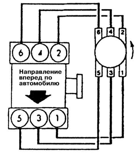 Порядок работы цилиндров: 1 — 4 — 2 — 5 — 3 — 6.