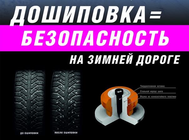 Благодаря дошиповке, вы обеспечите себе комфорт управления транспортным средством и безопасность на дороге. А также сэкономите деньги, поскольку вам не придется приобретать новые покрышки.