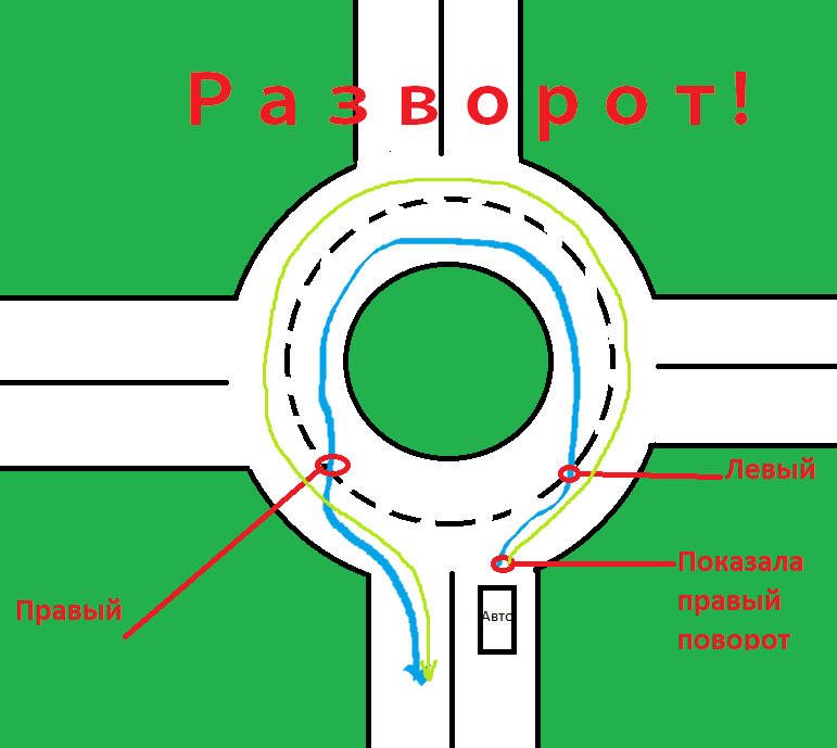 А теперь о сигналах поворота при въезде и выезде с кругового перекрестка.