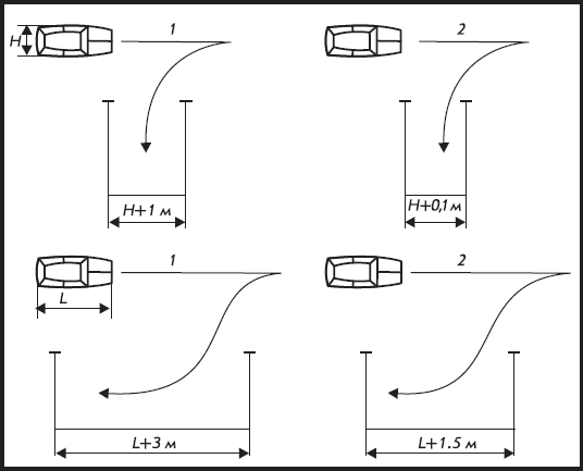 На рисунке 1 эта дистанция равна 1.5 метра. При такой дистанции, парковка задним ходом самая удобная, без опасности задеть припаркованные автомобили.