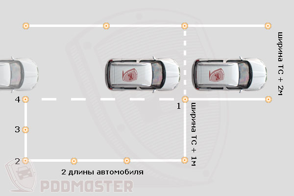 В Вологде на экзамене в ГИБДД упражнения выставляют под автомобиль с Д = 4,1 м, Ш = 1,8 м. Я буду рассказывать на примере автомобиля Лада Ларгус (Д = 4,5 м), несмотря на чуть большую длину, проблем с выполнением данного упражнения не возникает. У других автомобилей ориентиры похожие.