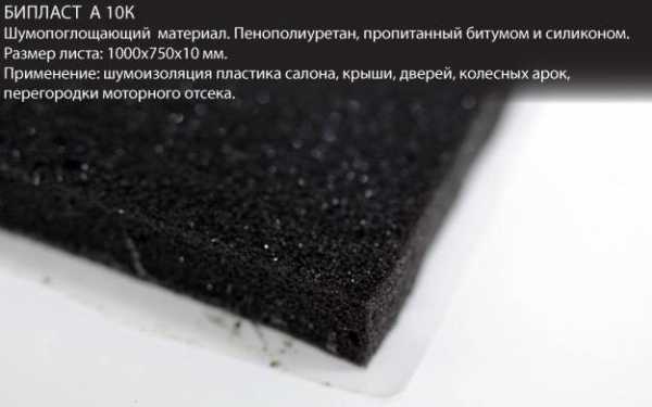 - Бипласт. Предназначен для ликвидации скрипов и заполнения щелей между различными деталями в салоне. Представляет собой схожий с поролоном материал, мгновенно принимающий форму щели/зазора, обеспечивая надежную изоляцию между примыкающими деталями. С успехом применяется на пластмассовых деталях, на стойках лобового стекла и во всех местах скрипа.