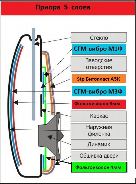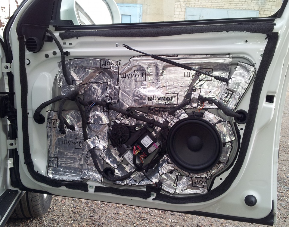 Такая шумоизоляция дверей автомобиля используется, когда вы планируете установить мощную акустическую систему с хорошим мидбасами в дверях. В этом случае двери должны быть подготовлены под такие динамики. Внешние шумы — уже не основная цель. Хотя с такой обработкой вы гарантировано избавитесь от большинства из них.