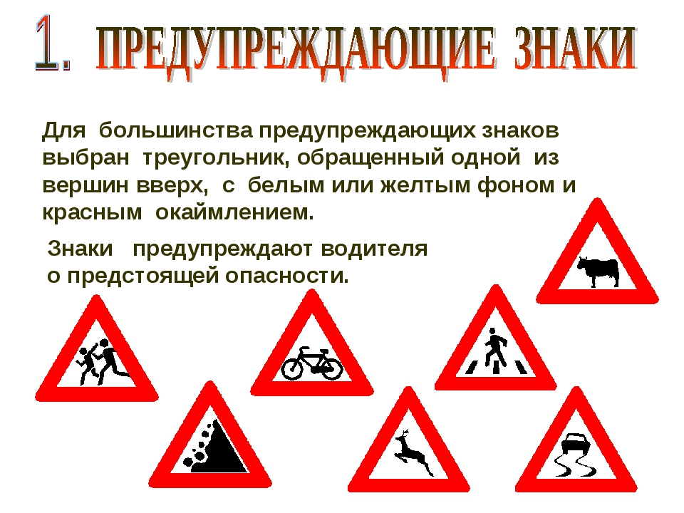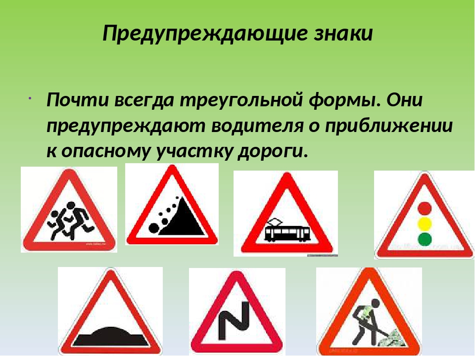 Предупреждающие знаки информируют водителей о приближении к опасному участку дороги, движение по которому требует принятия мер, соответствующих обстановке.