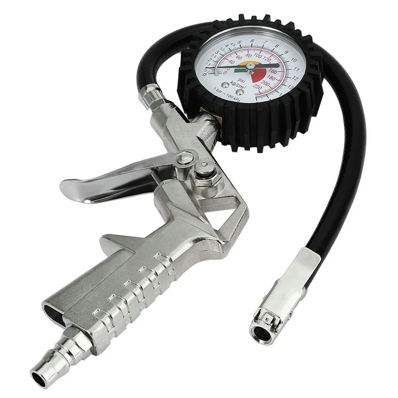 - Некоторые шинные манометры не просто проверяют давление воздуха. Они также включают компрессор, который снова наполняет ваши шины, когда они разряжены. Вы сможете следить за манометром, когда воздух проходит через шланг, чтобы убедиться, что вы получаете именно то давление воздуха, которое вам нужно. Манометры