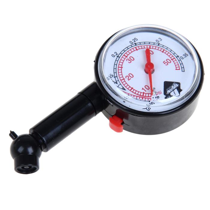 По-прежнему пользуется спросом аналоговый измеритель давления в шинах – с стрелкой и шкалой. Принцип его работы относительно прост – воздух, находящийся под давлением в колесе, давит на небольшой подвижный шток прибора, который через несложную систему шестеренок и рычагов поворачивает стрелку устройства. У этих манометров существуют ограничения в замере максимального давления.