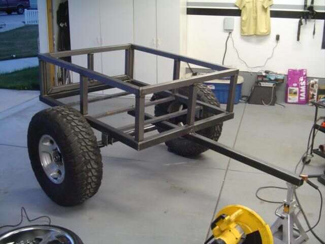 Оставшуюся часть четырехдюймового канала следует разрезать пополам. Из двух полученных кусочков получится язычок. В это время вы должны выбрать заминку. Некоторые сделаны под разными углами. Стороны язычка должны быть под правильным углом для вашей сцепки. Считайте, что расстояние от передней части прицепа до центра шаровой опоры прицепа составляет как минимум 36 дюймов.Лучше бы больше. Несколько хороших сварных швов обеспечат вам душевное спокойствие на долгое время. Когда основная рама готова, установите оси на раму и подсоедините пружинный рычаг. Поместите двухдюймовый блок между осью и рамой, чтобы установить пределы хода на неровностях. Тщательно измеряя, выровняйте оси параллельно друг другу и перпендикулярно раме прицепа. Приварите пружинные подвески на место.