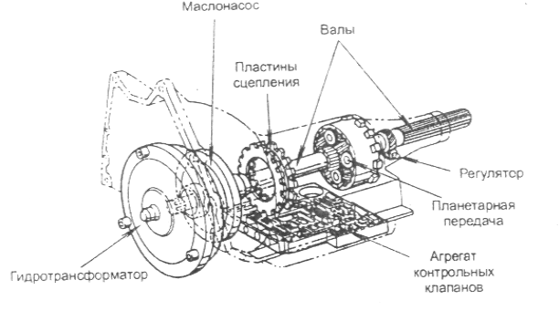 - Гидротрансформатора, который принимает крутящий момент от силового агрегата и передает его на следующий непосредственно за ним механизм.