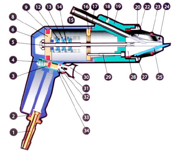 - Поднести пневмопистолет под прямым углом к отверстию и с помощью специальных лапок слегка раздвинуть его края.