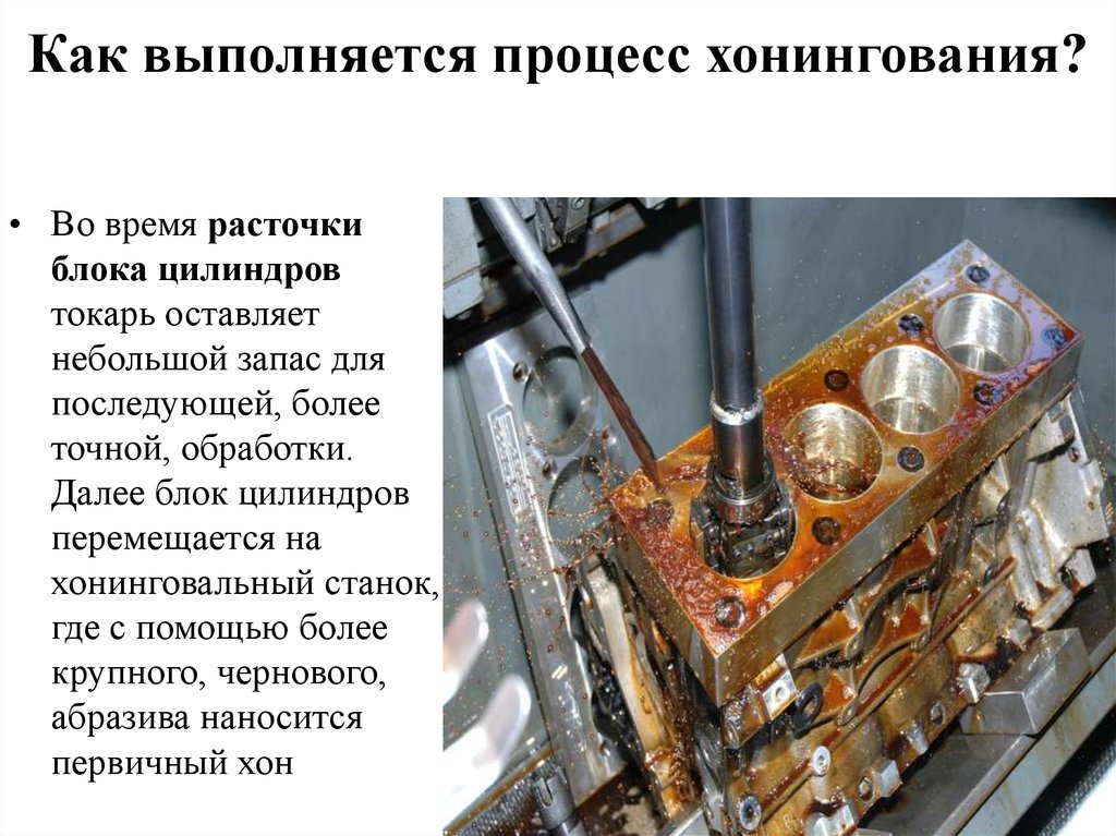 Процесс хонингования цилиндров двигателя состоит из двух частей.