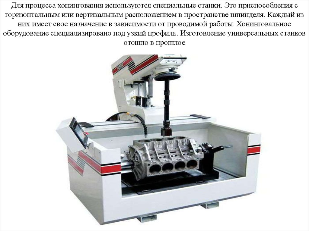 Хонингование выполняют на специальных хонинговальных станках, которые бывают трех видов:- горизонтально-хонинговальные;