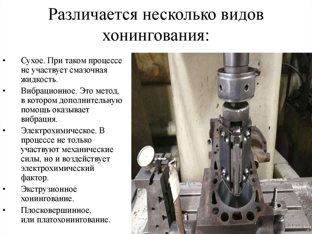 С этой целью используются абразивные материалы и специальное оборудование – хонинговальные станки. В зависимости от того, как производится процесс, выделяют несколько видов хонингования: