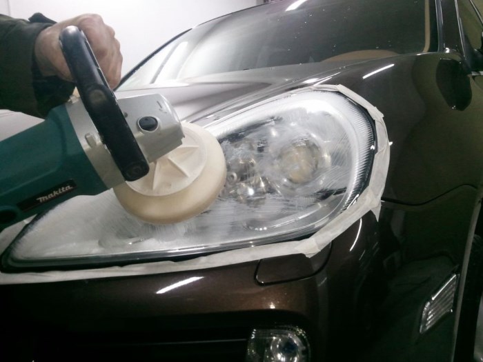 Если оптические приборы снять невозможно, то прилегающие к ним части кузова следует заклеить защитной пленкой или лентой. Это обезопасит лакокрасочный слой автомобиля от повреждений при проведении работ;