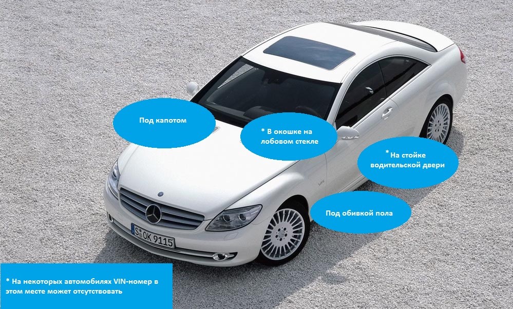 Отыскать идентификационный код авто достаточно просто. В большинстве случаев VIN — номер находится на металлической таблице под капотом авто, а также в одном из труднодоступных мест кузова. Производители намеренно прячут информацию от посторонних для того, чтобы минимизировать перебитие кода на угнанные ТС. В связи с этим во многих транспортах 17-значный код находится под передними окнами ТС в салоне, под поверхностью багажника, на передних и задних дверях и других скрытых местах.