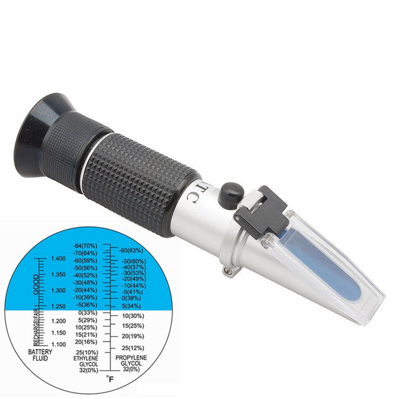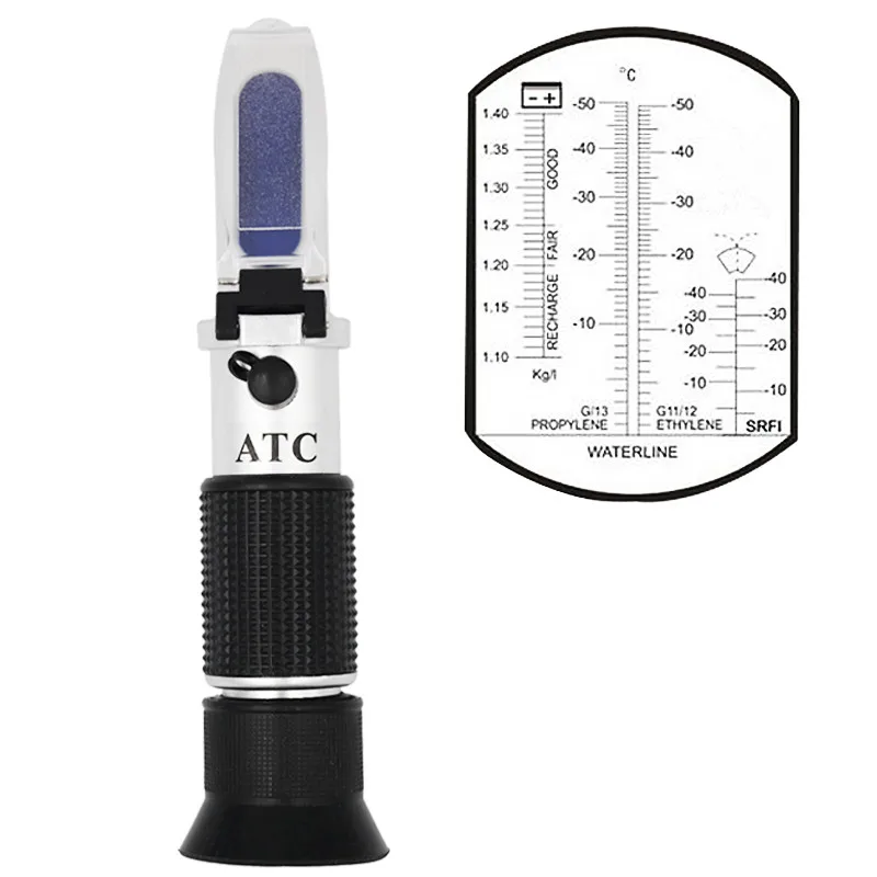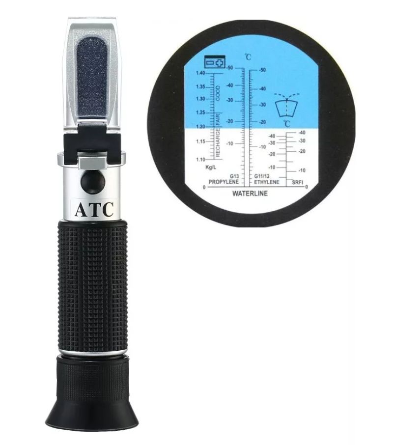 Рефрактометры измеряют концентрацию гликоля и определяют температуру замерзания антифриза. Для этого прибора требуется всего несколько капель жидкости для тестирования гликоля и не требуется регулировка температуры жидкости.