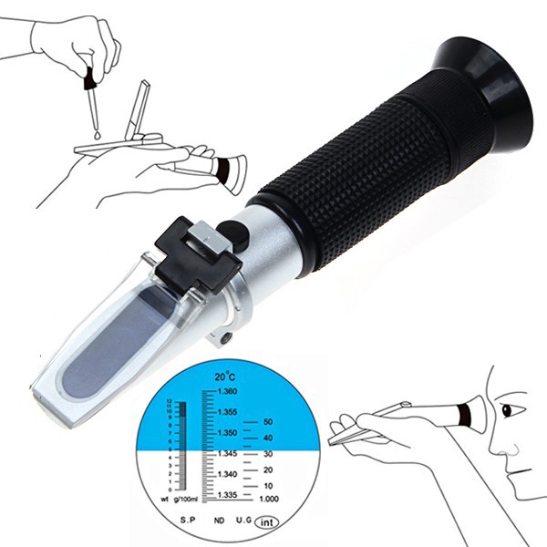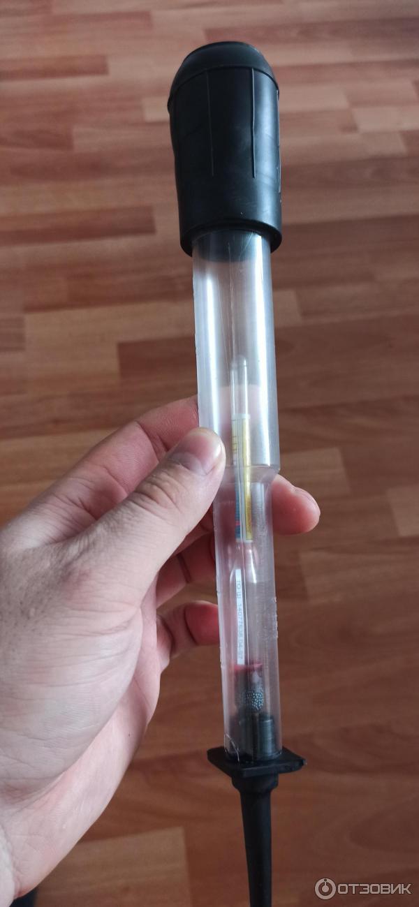 Принцип работы – аналогичный. В прозрачном корпусе со шкалой помещен поплавок, который в зависимости от плотности забранной жидкости больше или меньше всплывает.