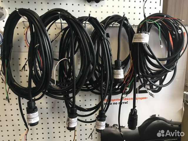 Проводка (жгут) для легкового прицепа разной длинны, универсальная. Разводка на крылья, задние фонари, освещение номерного знака, противотуманный фонарь, под вилку 7 пин.
