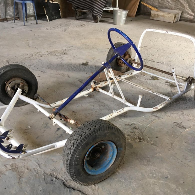 Последний желательно сделать из стали и закалить. Не пожалейте на это труда, особенно если вы задумали построить несколько машин. Крепления передних колес, рулевых тяг и педалей необходимо шплинтовать; вполне допустимы и самоконтрящиеся гайки.