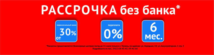 - Срок рассрочки: до 18 месяцев без первоначального взноса