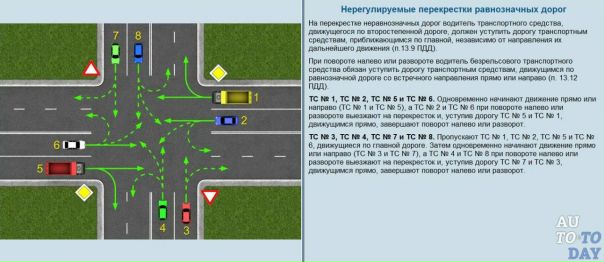 Правила проезда перекрёстков нерегулируемых равнозначных дорог