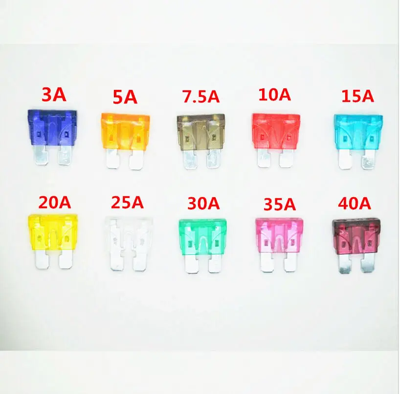 Существует 4 основных типа пластинчатых предохранителей: Micro, Mini (APM, ATM), Standard (APR, ATC, ATO) и Maxi (APX) . Каждый предохранитель может иметь цветовую маркировку с соответствующей номинальной силой тока сверху.