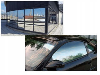 Тонирование зеркальной пленкой представляет собой подвид черной тонировки, но специальное напыление, придает ей зеркальный эффект. Тонирование зеркальной пленкой способно улучшить эргономические характеристики и придать автомобилю стильный впечатляющий вид. Особенно привлекательно смотрятся автомобили, имеющие выраженный металлический оттенок. Авто кажется выше классом и приобретает статусные характеристики. На фото слева можно удостовериться в выразительном внешнем виде авто с зеркальной тонировкой по кругу.