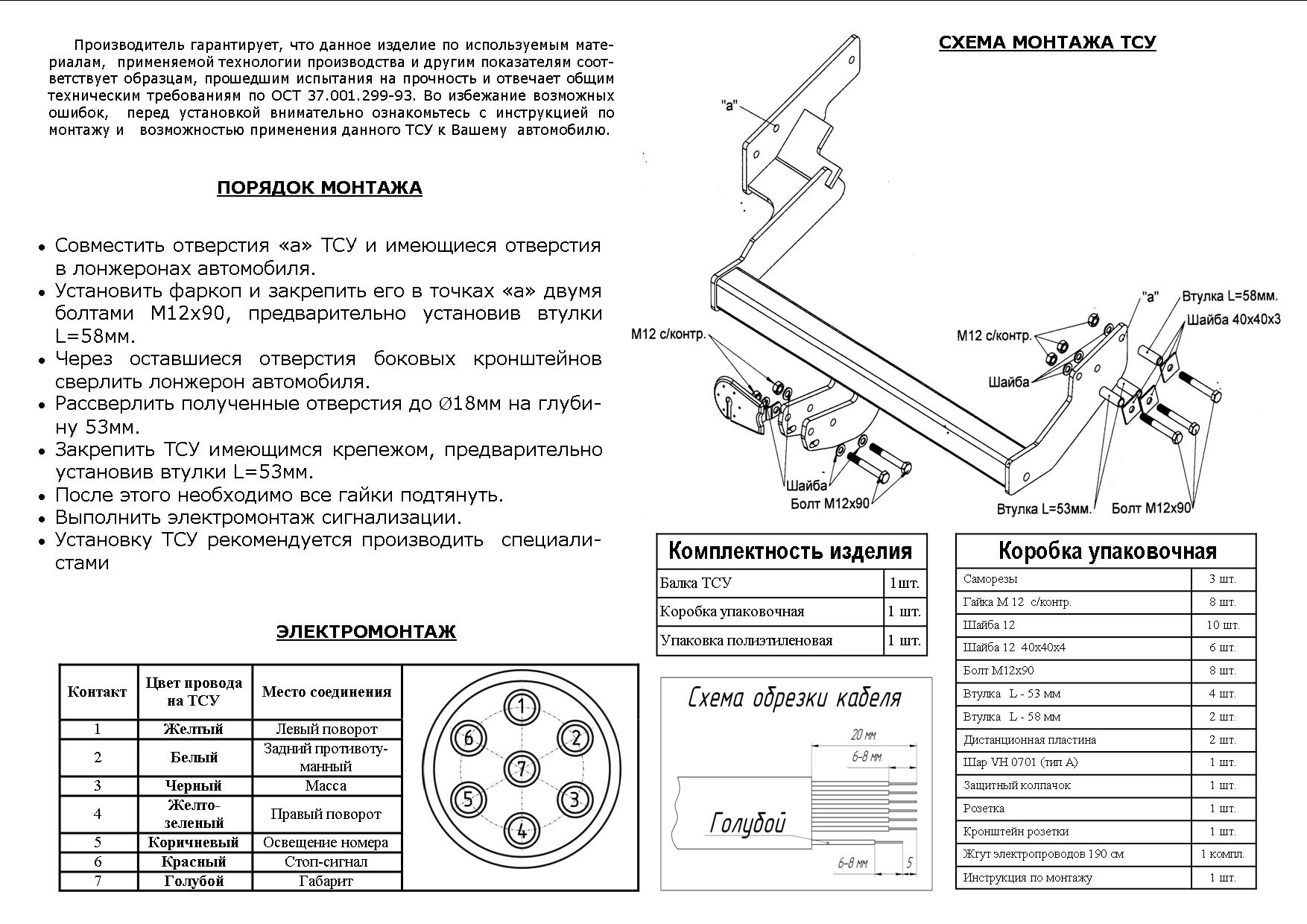 Паспорт (инструкцию по монтажу) фаркопа с отметкой автосервиса о его монтаже.