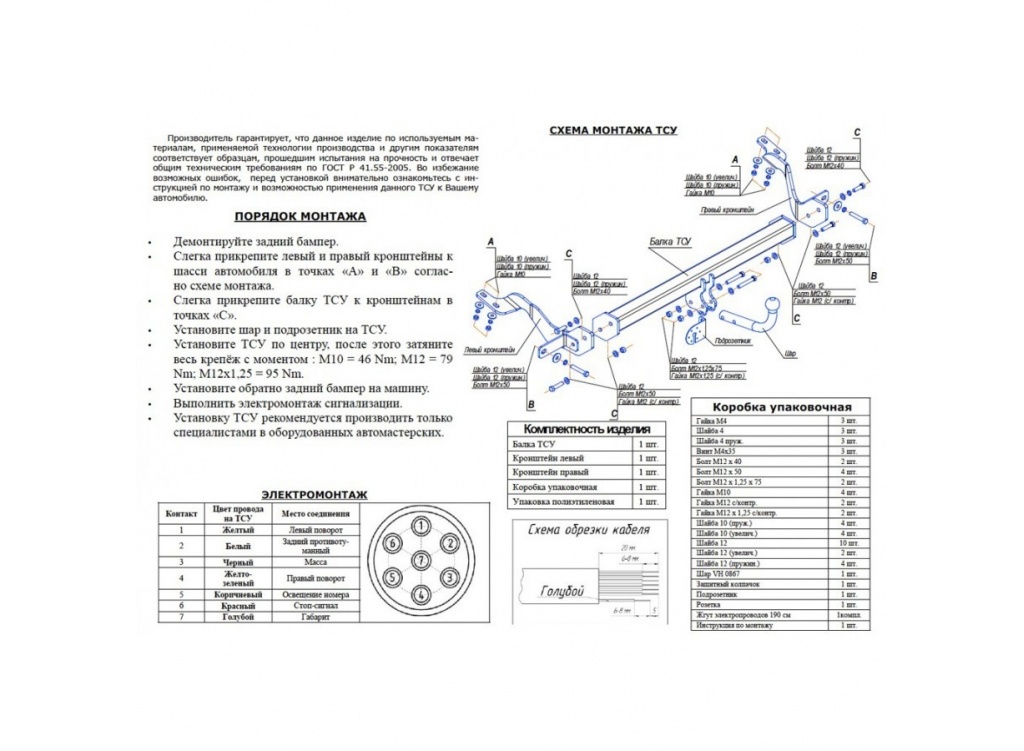 - если фаркоп (ТСУ) ещё не установлен – то необходимо установить;