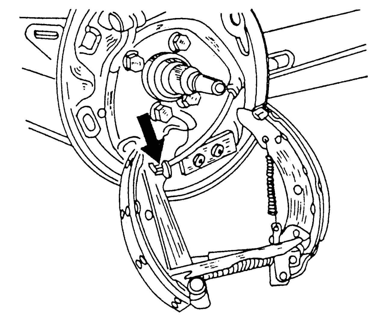 Как показано на этой схеме, когда стояночный тормоз затянут, внутренние пружины барабанной тормозной системы прижимают тормозные колодки наружу к внутреннему барабану тормозного ротора.Когда узел стояночного тормоза расширяется, чтобы зацепить внутренний тормозной барабан, находящийся внутри тормозных дисков, усилие передается на обе колодки. Вращение колес вперед или назад помогает увеличить тормозную способность механизма за счет заклинивания колодки во внутреннюю барабанную часть тормозного ротора. При правильной настройке конструкция работает довольно хорошо.