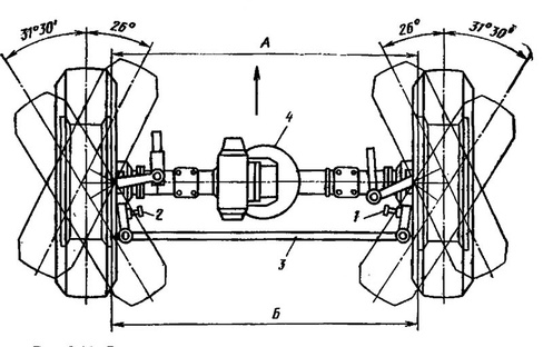 Некоторое схождение при поворотах необходимо, потому что внешнее колесо должно поворачиваться на больший радиус, чем внутреннее колесо. Если бы углы поворота колес были одинаковыми, внешняя шина задиралась бы при попытке повернуть на меньший радиус.