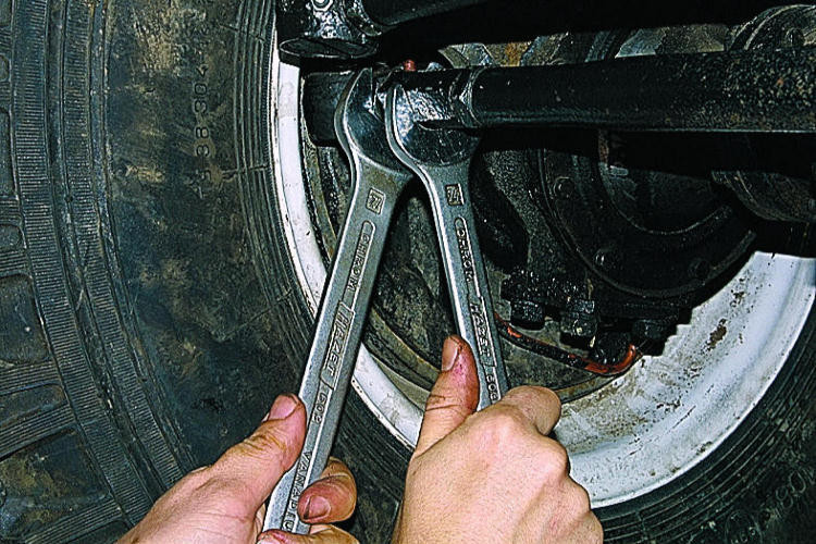 Рис. 3. Ослабление стяжных болтов наконечников поперечной рулевой тяги