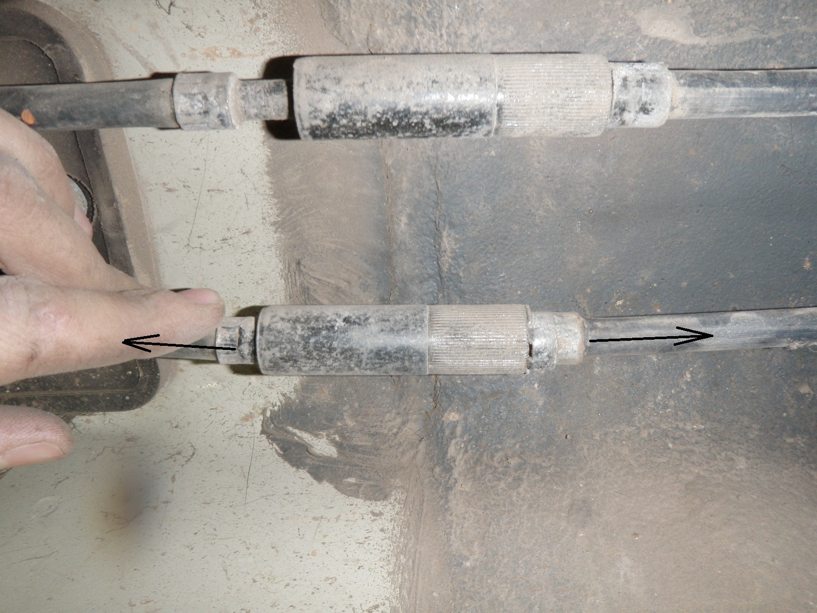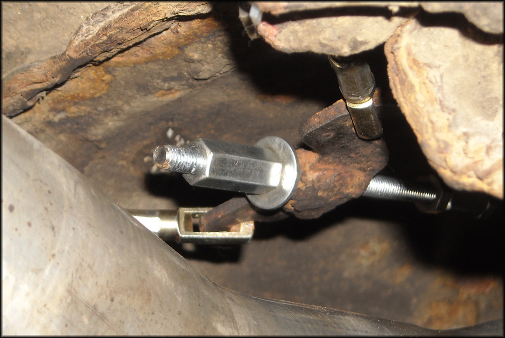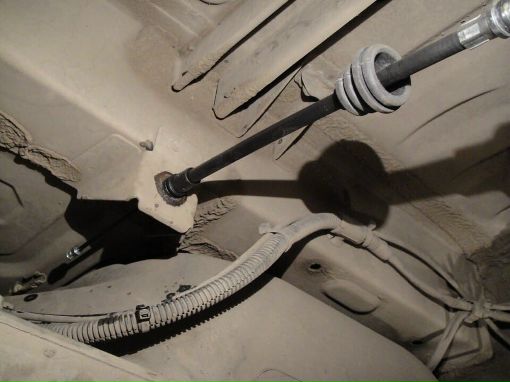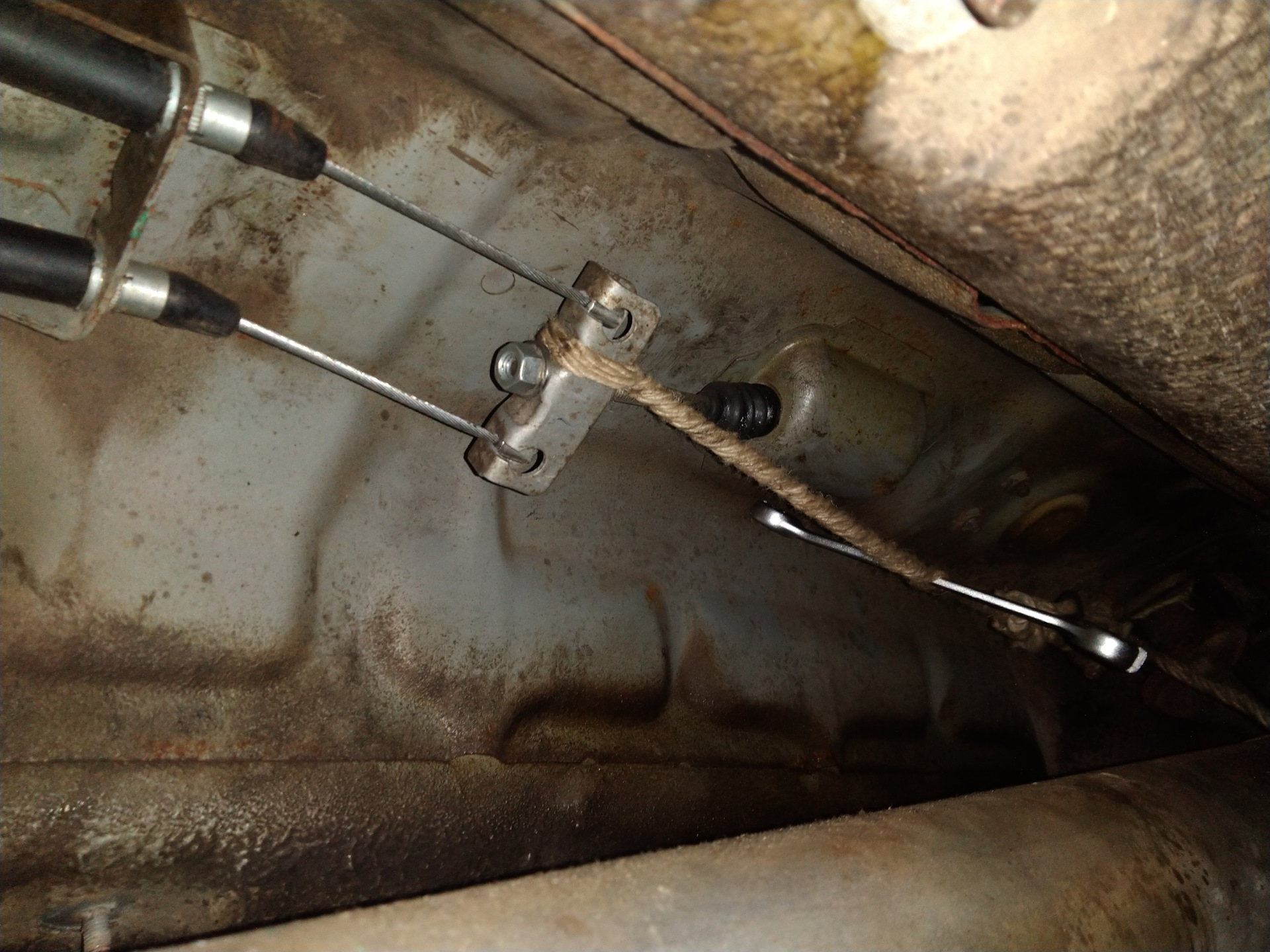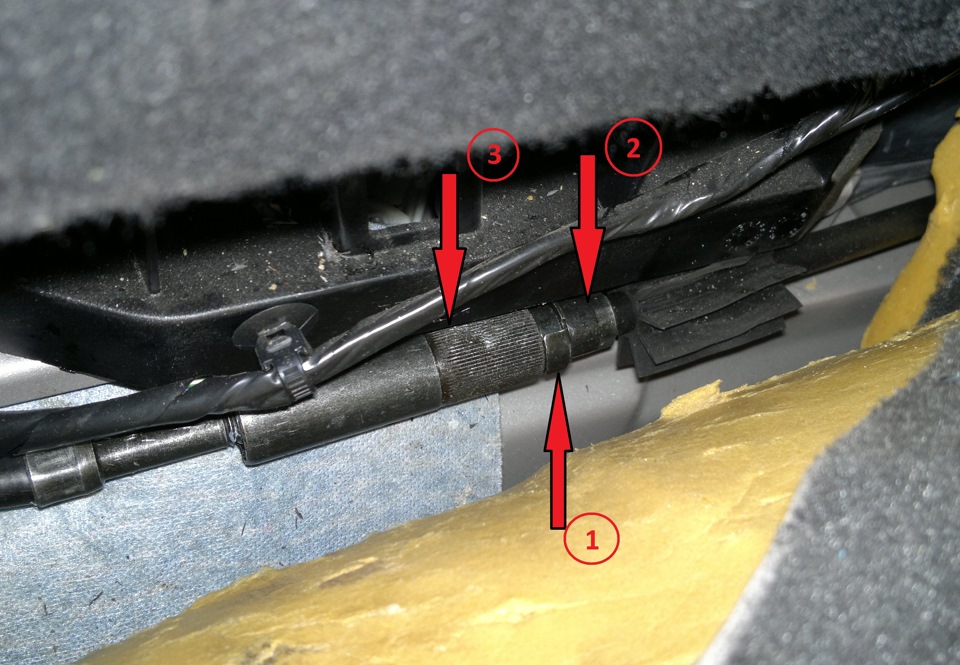 Перед вами троса ручного тормоза и регулировочная гайка на 13, прежде чем подтянуть ручник обратите внимание на троса ручника, как они подтянуты, не провисают ли они?