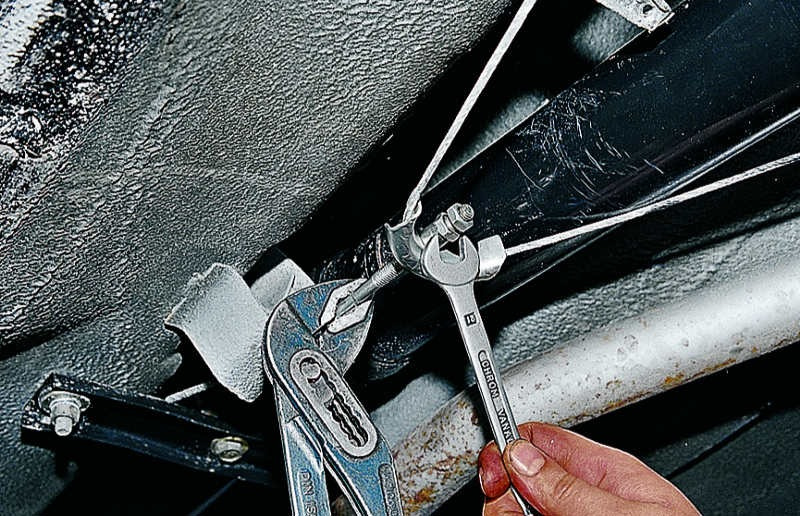 Натяжка ручного тормоза состоит из таких этапов: