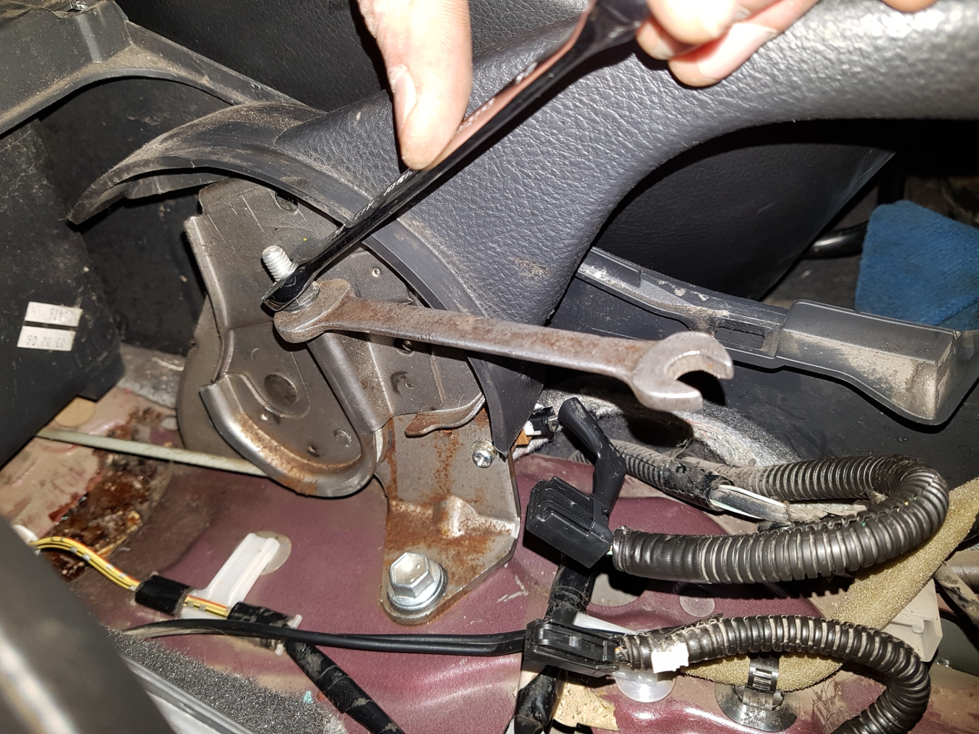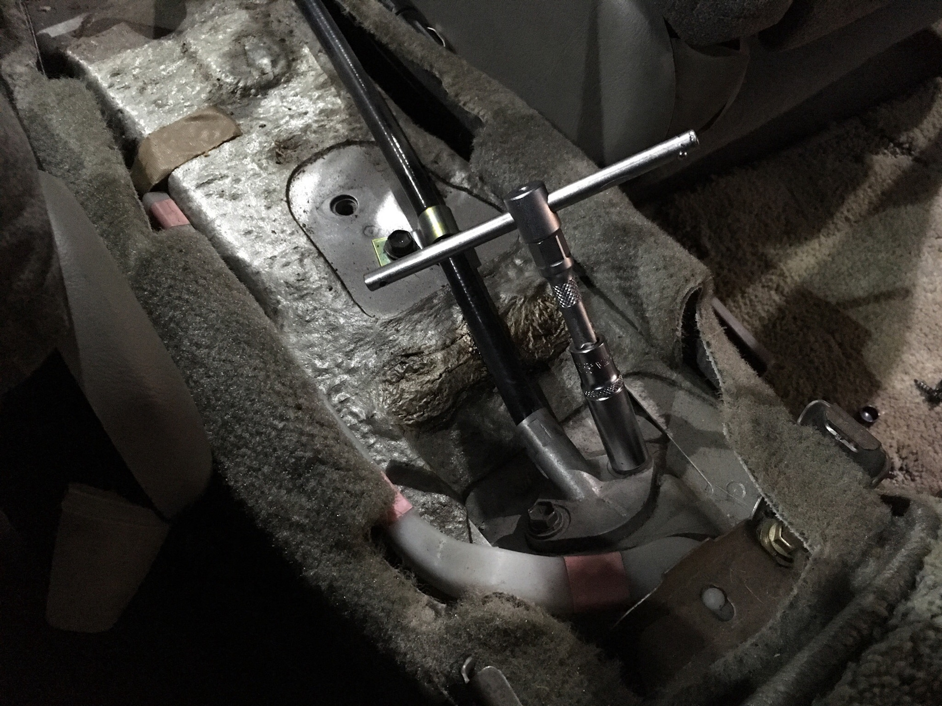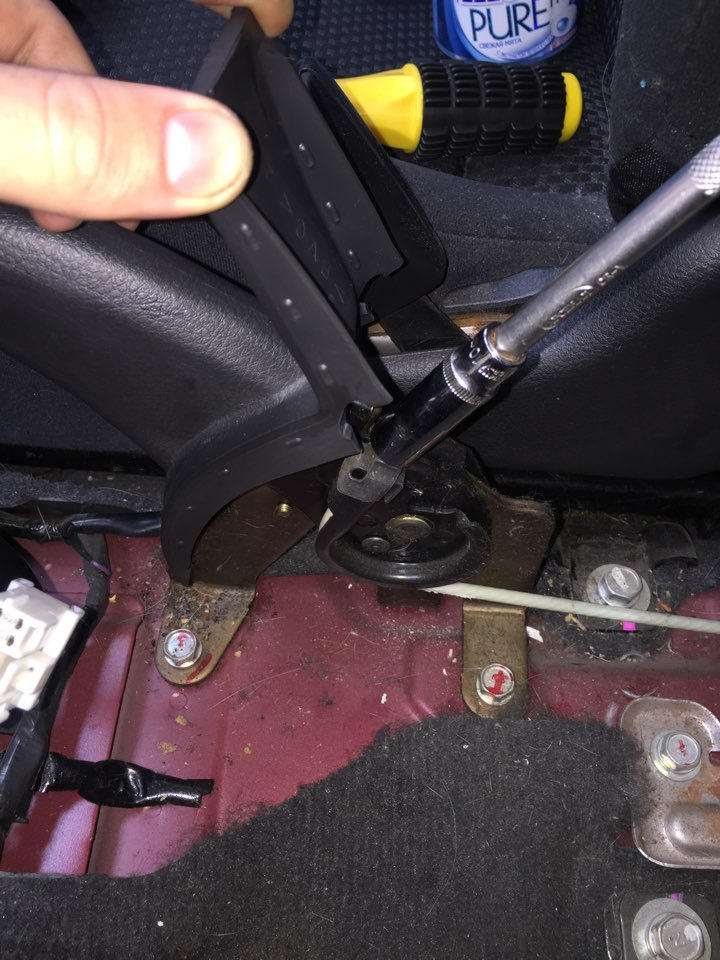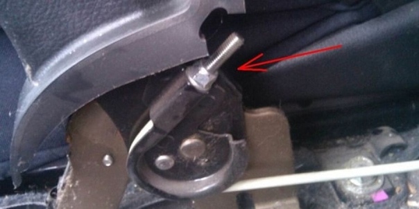 1.![]() | Снимите напольную консоль, чтобы добраться до регулировочной гайки. |