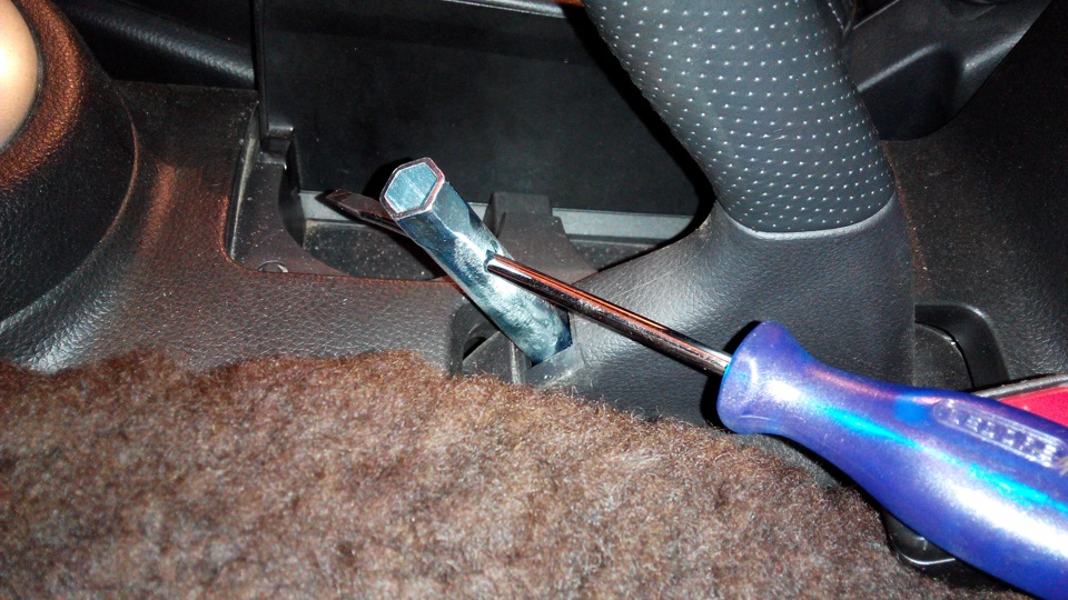 Снимаете пепельницу для задних пассажиров, снимаете основание пепельницы подцепив отверткой.