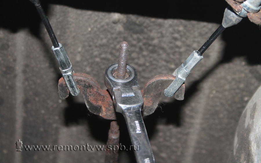 После того как вы убедились в целостности тросов ручника, приступаем к его регулировке.