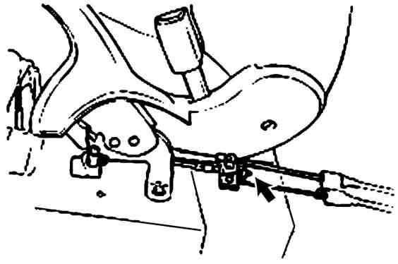 | 2. | Ослабьте трос стояночного тормоза до упора обоих рычагов управления. в полностью выключенном положении. |