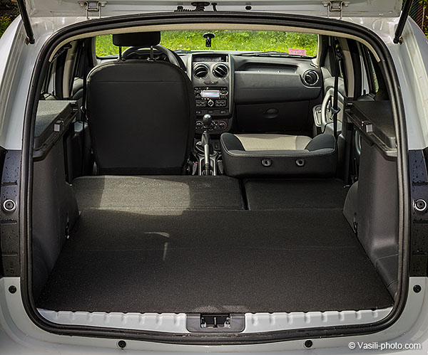 Имейте в виду, что с этой Dacia этот показатель упадет до 408 литров, если вы выберете модель 4 × 4, благодаря полноценному полноразмерному запасному колесу этого варианта. Опустите заднюю скамейку (которая складывается только на более крупных моделях), и вы можете увеличить это число до 1636 литров.