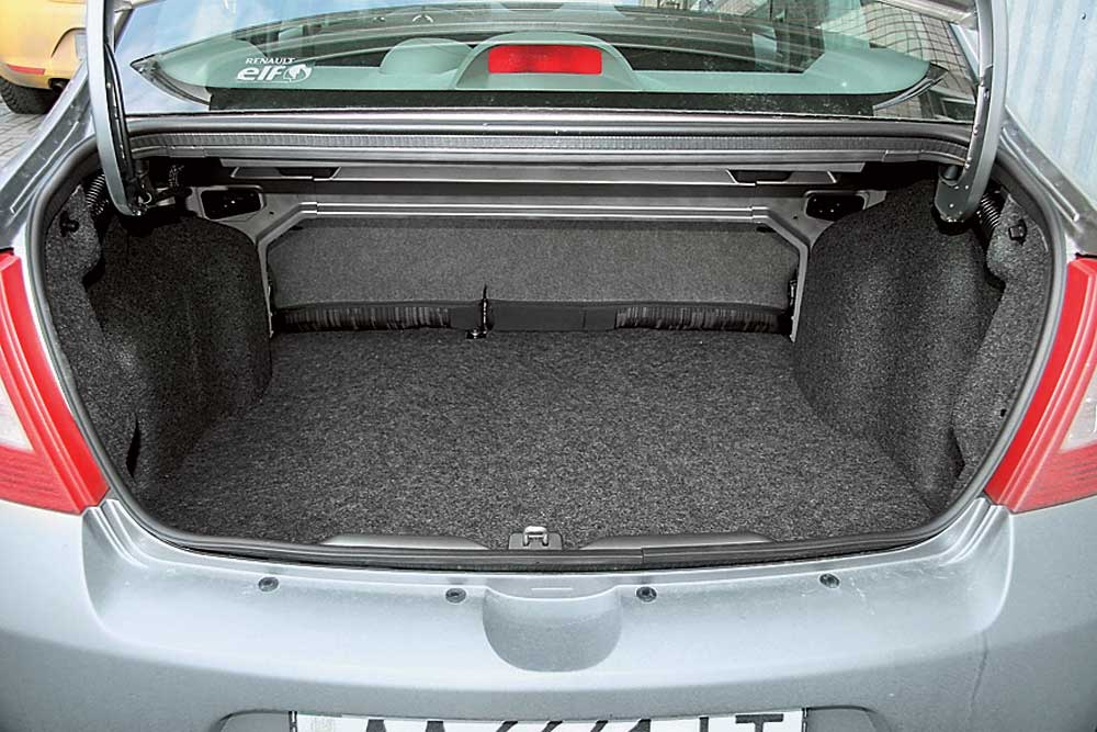 Однако имеются некоторые конструктивные недостатки багажного отсека — некоторую часть его полезной площади занимают петли крепления крышки багажника. Просвет багажника позволяет помещать в него такие крупногабаритные предметы, как стиральная машина и холодильник. Объем багажного отсека можно увеличить, если снять задние кресла для пассажиров и выдвинуть часть груза в салон автомобиля. Спинка заднего сидения Рено Логан не складывается, поэтому владелец может только демонтировать сидения для увеличения полезной площади перевозимых грузов. В новых моделях Рено Логан заднее кресло уже оборудовано складной спинкой. Автомобиль способен перевозить свыше 550 кг груза без потери технических характеристик.