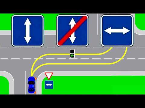 Дорога или конструктивно отделенная проезжая часть дороги, по которой движение транспортных средств по всей ширине осуществляется в одном направленииНа знаках 5.8.1, 5.8.2 может быть отражена информация об ограничениях дорожного движения на перекрестке (нанесены изображения запрещающих или предписывающих знаков). Знаки 5.8.1, 5.8.2, разрешающие поворот налево с крайней левой полосы движения, разрешают и разворот с этой полосы.