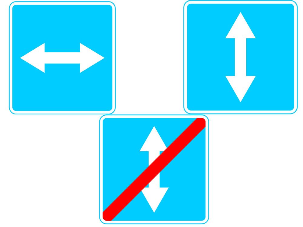 9 «Конец реверсивного движения» и 5.10 «Выезд на дорогу с реверсивным движением».