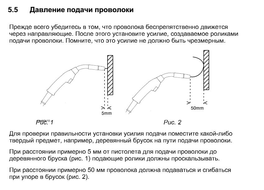 Эти нормы должны соблюдаться постоянно. Несоответствие правилам может вызвать деформацию проволоки в роликах, износу деталей держателя и шланга.