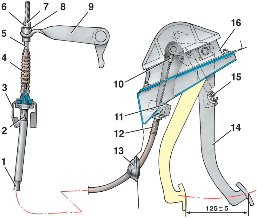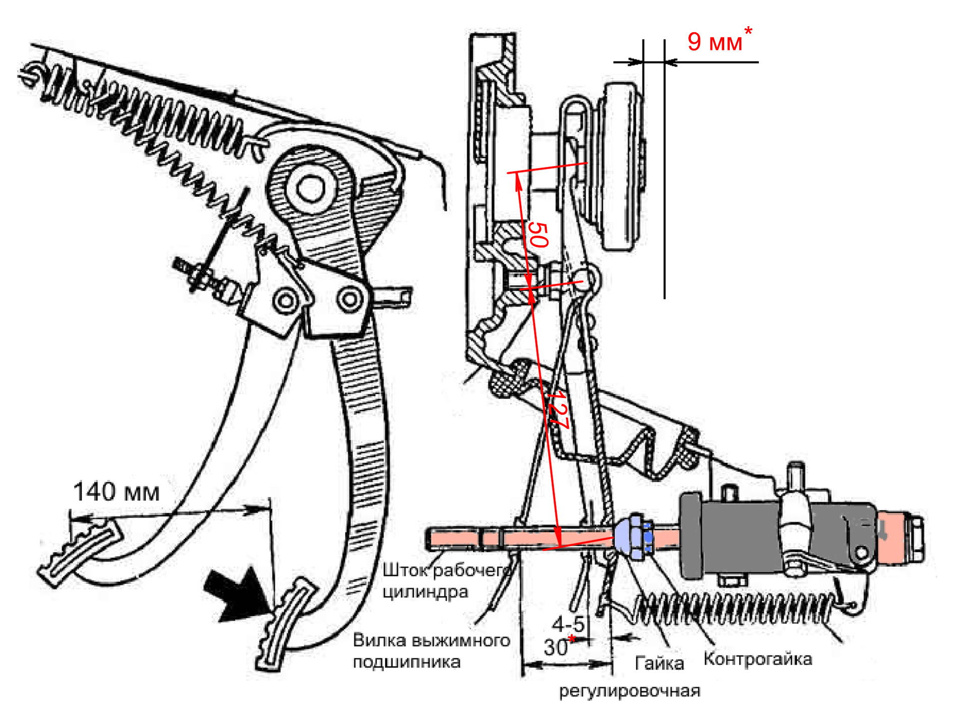 Суть процедуры всегда одна – уменьшить или увеличить ход педали путем натяжения или ослабления троса, либо регулировки гидравлического толкателя.
